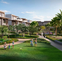 Villas and townhouses surrounded by artificial lagoons with a tropical atmosphere