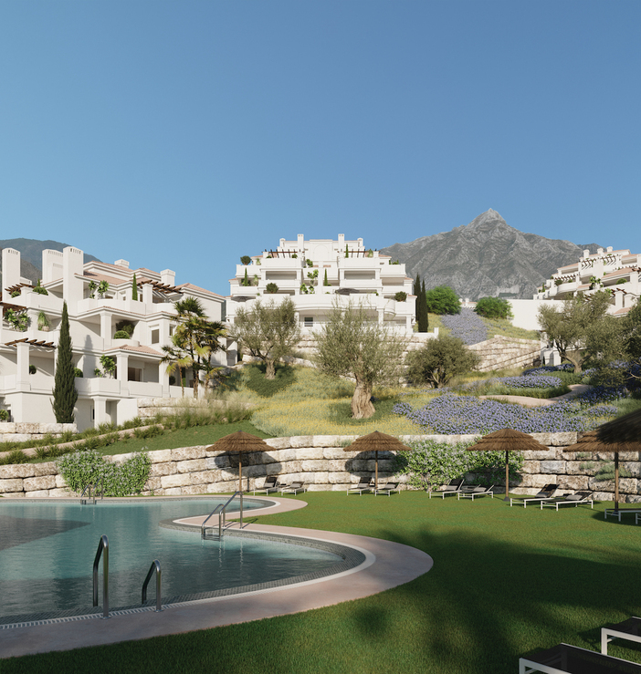 A residential complex on the southern coast of Spain on the outskirts of the well-known resort of Marbella in the prestigious area of Nueva Andalucía. It is located in a quiet residential area surrounded by golf courses near the famous Puerto Banús. A total of 75 south-facing apartments with 2- and 3-bedroom layouts with superior terraces offer an idyllic atmosphere with unrepeatable views of the Mediterranean Sea. Prices from EUR 450,000.