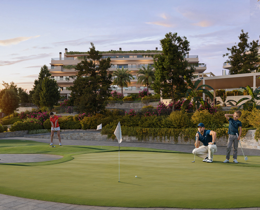 A private residential complex in the sought-after area of Mijas Costa, one of the most prestigious areas in southern Spain, will provide its residents with the perfect private gated community, outdoor pools for adults and children, a relaxation area, gym, children's playground, golf tee or pétanque pitch.