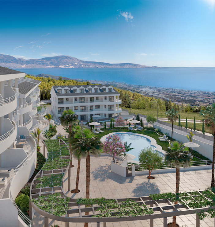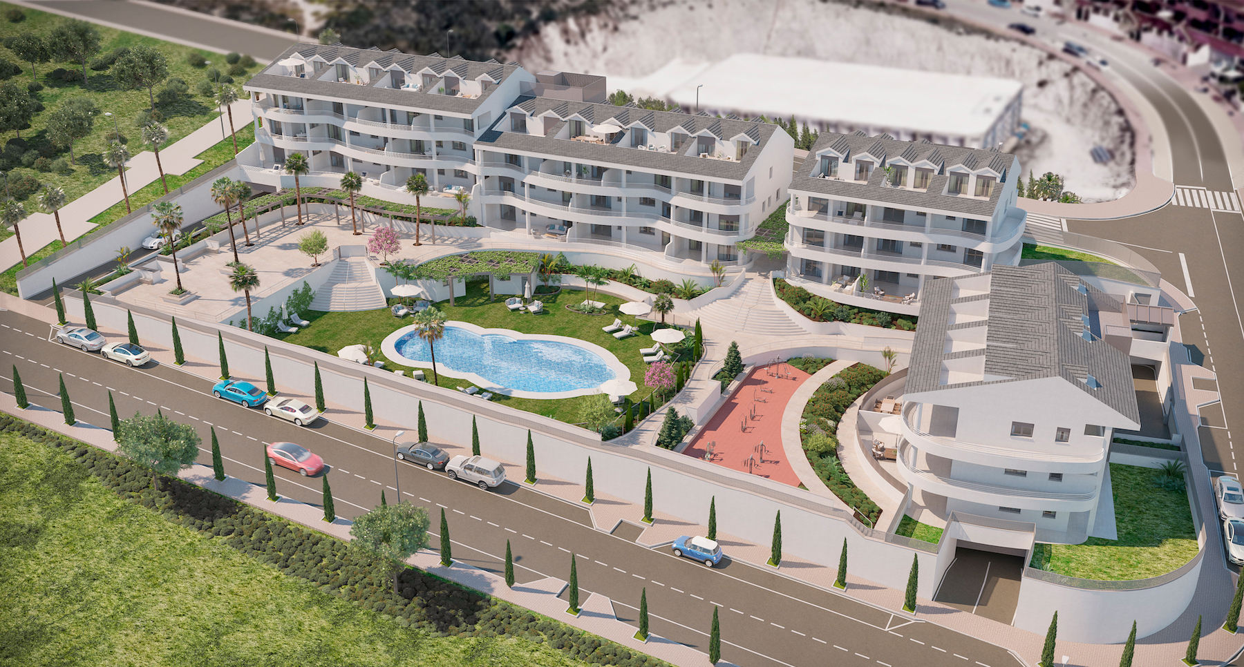 Design development project on the outskirts of the popular resort of Benalmádena in southern Spain. It is located in a quiet location at the foot of the Sierra de Mijas mountain range, thanks to which it has unrepeatable views of the sea, but with excellent accessibility to the city center. It includes a total of 35 apartments with layouts from 2 to 4 rooms. Prices from EUR 310,000.