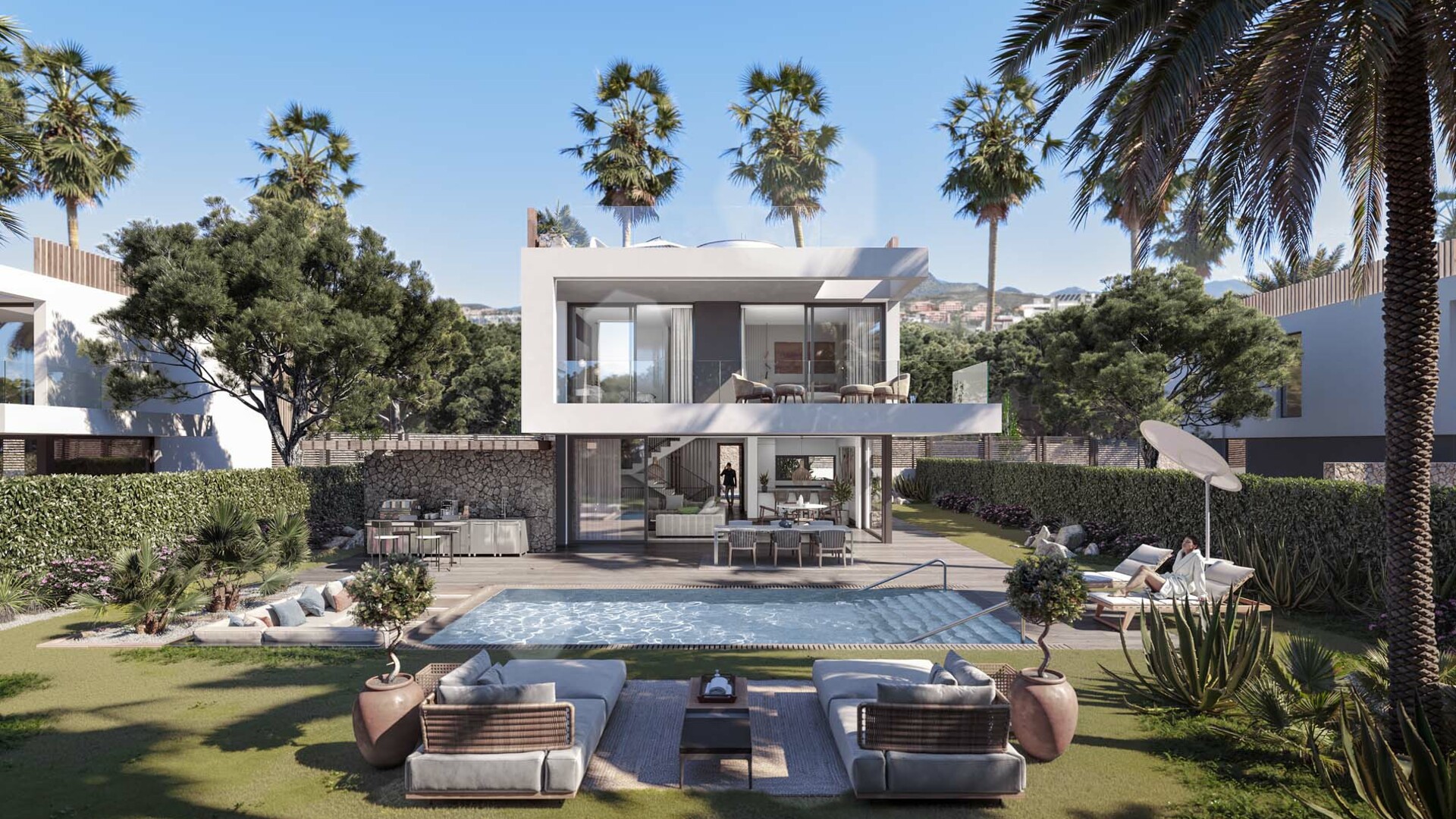Standards include porcelain floors and tiling, French windows, custom furniture, security doors, LED lighting in the kitchen, bathrooms and hallways, air conditioning and a home intercom. The houses will also have gardens with a private pool and an outdoor parking space.