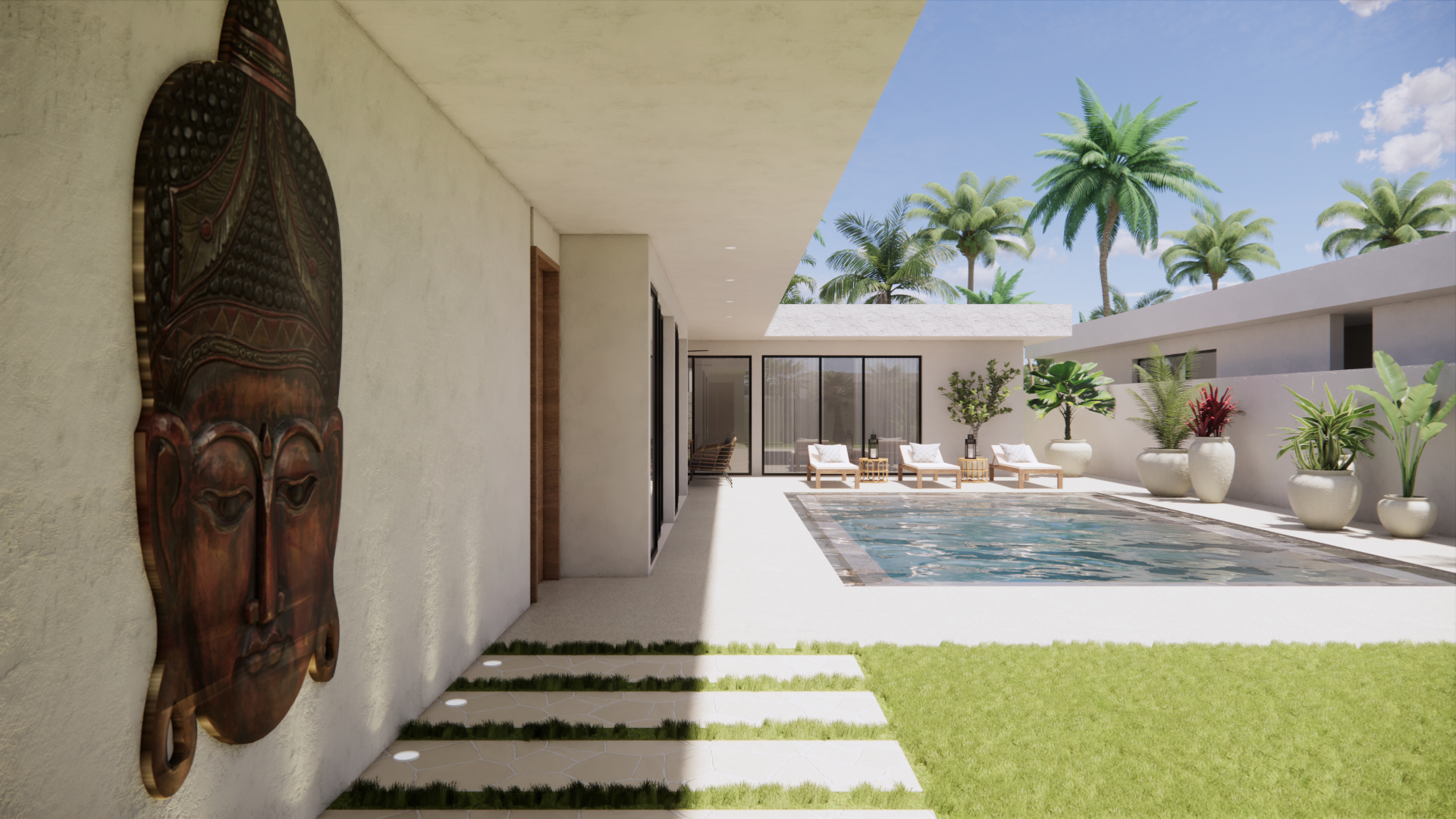 La elegante Villa Lotus de tres dormitorios representa la combinación perfecta de arquitectura moderna, ambiente tropical y diseño atemporal. Con una superficie útil de 117,93 m², ofrece una vivienda cómoda, bien diseñada y altamente funcional, ideal tanto para familias que buscan una vivienda privada como para inversores que buscan una oportunidad rentable en una de las zonas más codiciadas de Koh Samui. La pieza central de la villa es un amplio salón con cocina, conectado a la perfección con la terraza y la piscina. Tres dormitorios, cada uno con baño privado, garantizan absoluta privacidad y comodidad para todos los miembros de la familia e invitados.La villa cuenta con una piscina privada de 45 m² rodeada de exuberante vegetación tropical, creando un entorno tranquilo ideal para el descanso y la relajación. Grandes ventanales y paredes corredizas de cristal conectan a la perfección el interior con el exterior, maximizando la luz natural. También dispone de aparcamiento cubierto.