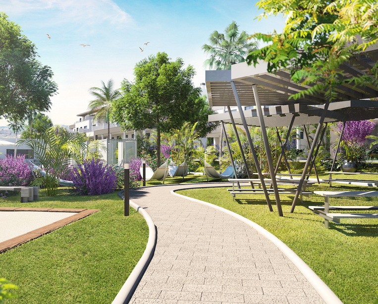 Centrado alrededor de un cuidado jardín tropical con piscina, gimnasio y espacios sociales, el complejo ofrecerá una sensación de perfecta privacidad, seguridad y la atmósfera idílica de la Costa del Sol. Los estándares incluyen pisos y alicatados de cerámica, aire acondicionado, cocinas y baños totalmente equipados y una plaza de garaje con preparación para una estación de carga de coches eléctricos y un sótano para cada apartamento.