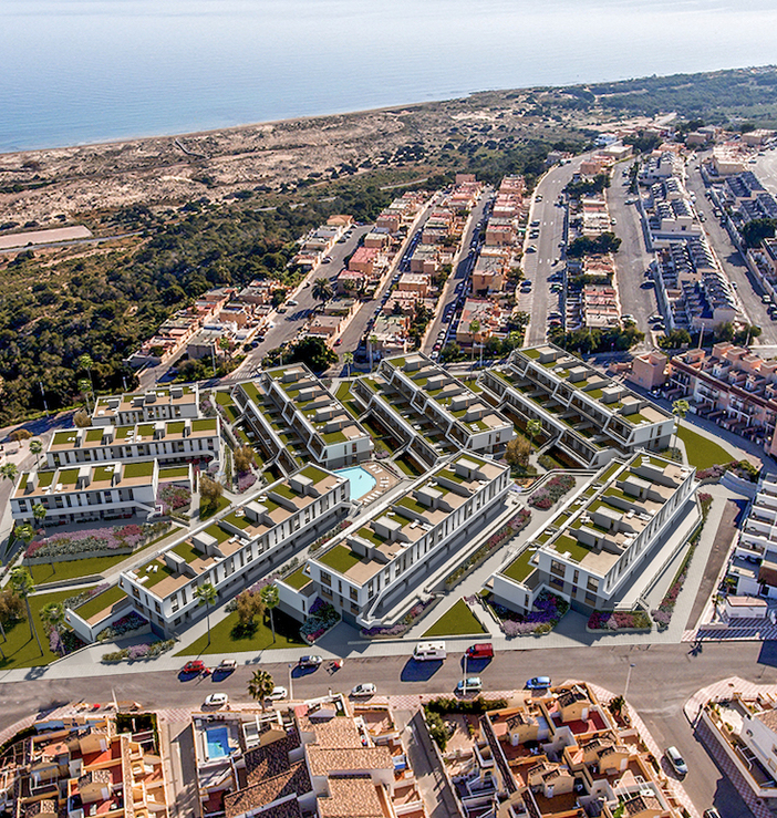 Een wooncomplex in opkomst aan de zuidkust van Spanje, aan de beroemde kust van de Costa Blanca. Het is gelegen in een rustige familiewijk van de stad Gran Alacant, op een half uur rijden van de badplaats Alicante. In totaal 170 appartementen met indelingen met 2 en 3 slaapkamers bieden een idyllische mediterrane sfeer dicht bij de stranden en zandduinen van het Carabassi Nationaal Park. Prijzen vanaf € 289.000.