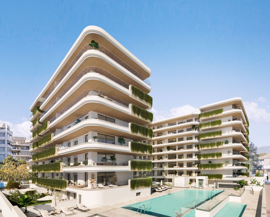 Een modern appartementencomplex op slechts 100 meter van het strand, gelegen aan de rand van de drukke mediterrane badplaats Fuengirola. Het biedt in totaal 116 appartementen in één- tot driekamerindeling met grote terrassen en voortuinen op de begane grond. Prijzen vanaf € 496.000.