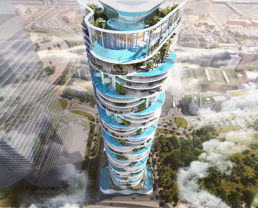 Projekt stanowi idealne połączenie życia miejskiego i wyspiarskiego. Zaraz po przybyciu będziesz oszołomiony spokojną i orzeźwiającą atmosferą tropikalnych palm i wody. Od odblaskowych powierzchni po płynne wzory i eteryczne akcenty, wnętrza przekształcają się w tropikalny raj z wodospadami, jeziorami i ogromnymi akwariami pełnymi wodnych stworzeń.