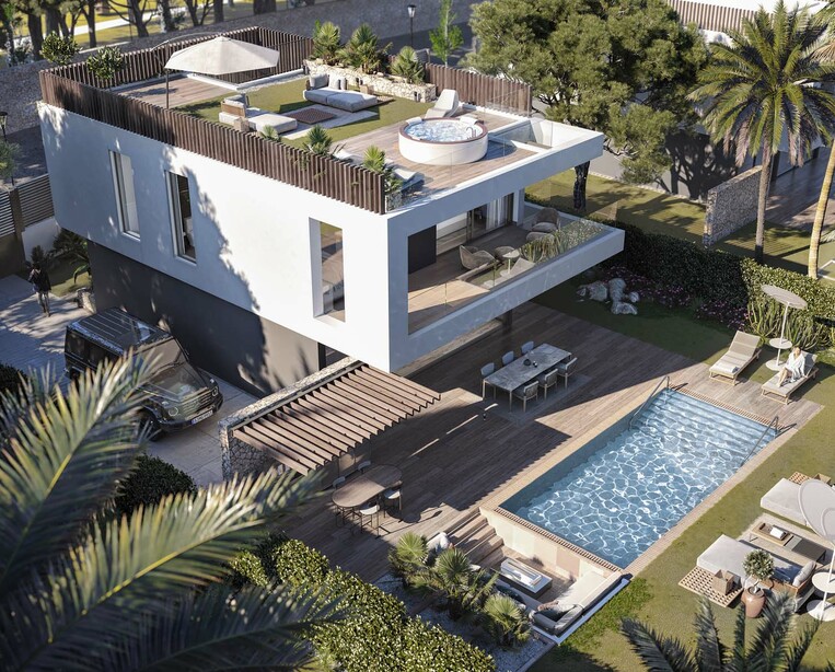 Стандарты включают фарфоровые полы и плитку, французские окна, мебель на заказ, защитные двери, светодиодное освещение на кухне, в ванных комнатах и ​​коридорах, кондиционер и домофон. У домов также будут сады с частным бассейном и открытая парковка.