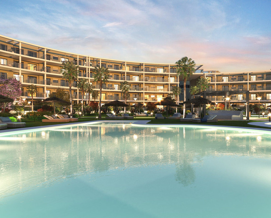 Архитектурно необычный жилой комплекс в Ла Дукеса всего в 150 метрах от пляжа, вдали от суеты больших городов, повседневной жизни и многолюдных курортов. Он предлагает 190 апартаментов с двух- и трехкомнатной планировкой, идеальную приватность частного сада с несколькими бассейнами и панорамным видом на море и окружающую природу. Цены от 263 800 евро.