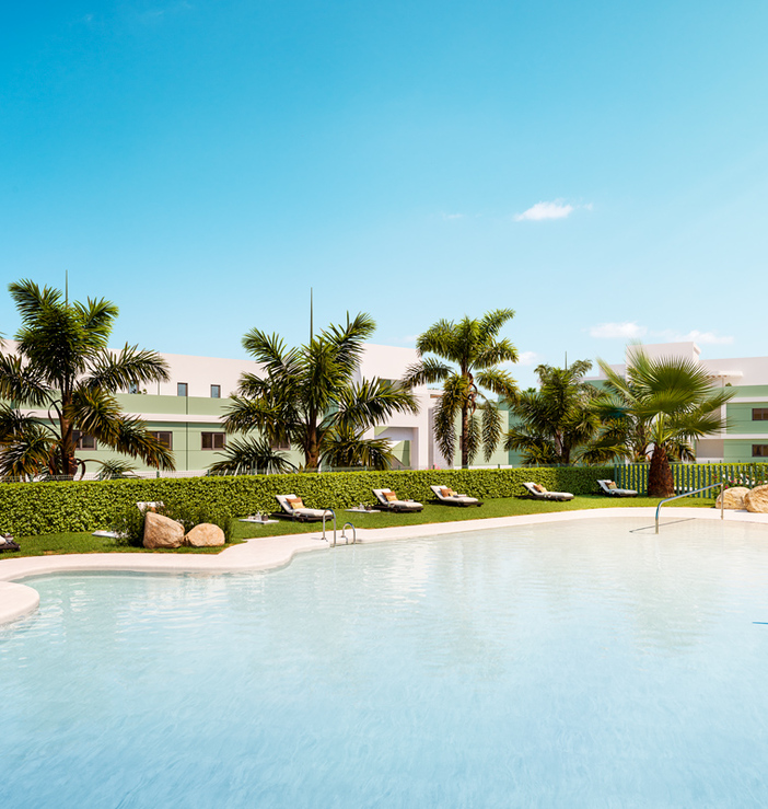 Он будет включать в себя 140 квартир с двумя и тремя спальнями, палисадниками и просторными террасами, а также эксклюзивные пентхаусы на крыше, образующие закрытый комплекс. Цена от 435 000 евро. Стандарты характеризуются высоким качеством материалов и изготовления. В них есть фарфоровые полы и плитка, французские окна, кондиционеры и полностью оборудованные кухни и ванные комнаты. Комплекс включает в себя 2 открытых бассейна, в том числе пляжный и бассейн в виде лагуны в красивой зеленой зоне с газонами и садами. Тематические дорожки ведут через красивые зеленые зоны к таким объектам, как полностью оборудованный тренажерный зал и частный спа-центр с крытым бассейном с подогревом, сауной, паровой баней и раздевалками для него и для нее.